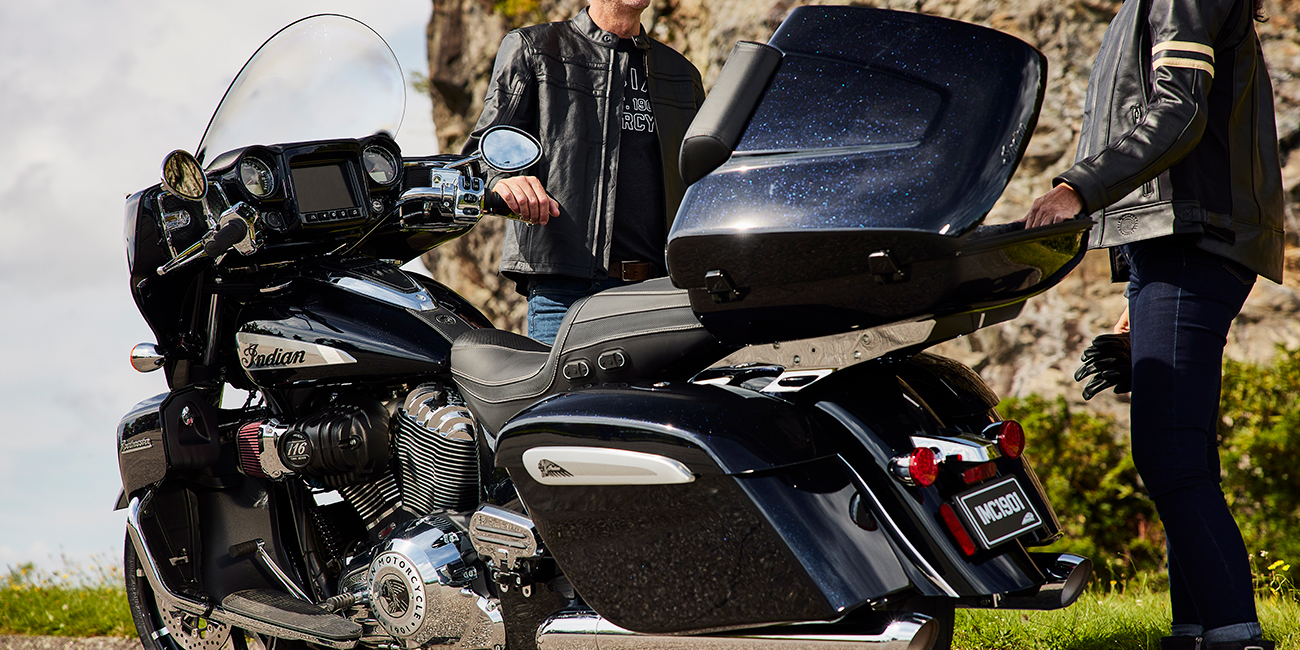 7" touchscreen powered by RIDE COMMAND with Apple CarPlay® integration; Power Windshield; Highway Bars; Vinyl Rogue Seats; Heated Grips; Adjustable Passenger Floorboards; 164 Litres of Storage; Tire Pressure Monitoring; Remote-locking Hard Saddlebags & Trunk; Selectable Ride Modes; Rear Cylinder Deactivation; ABS; Cruise Control; Keyless Ignition; 200 Watt Audio System with AM/FM, Bluetooth, USB, Smartphone Compatible Input; 12V Charging Port